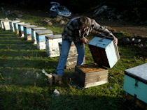 Μην επιχειρήσετε να κάνετε αυτό που κάνει ο Μάριος. Κουβαλάει 35 χρόνια μελισσοκομικής εμπειρίας στην πλάτη του